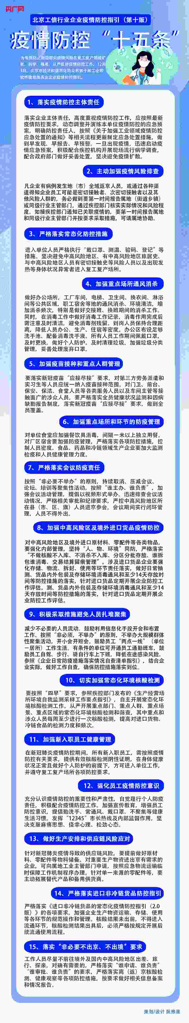 央廣網(wǎng)北京12月5日消息 為有效防止新冠肺炎疫情風(fēng)險在復(fù)工復(fù)產(chǎn)領(lǐng)域擴(kuò)散,科學(xué)、精準(zhǔn)、從嚴(yán)抓好疫情防控工作,12月3日,北京市經(jīng)濟(jì)和信息化局公布第十版工業(yè)和軟件信息服務(wù)業(yè)企業(yè)疫情防控指引。