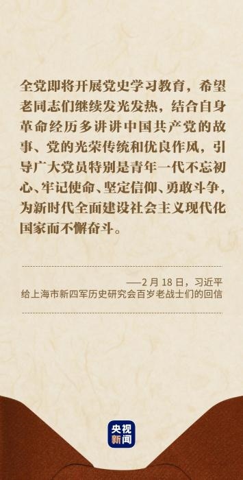 習(xí)近平總書記在回信中說:“你們青年時代就投身革命,為黨和人民事業(yè)英勇奮斗,期頤之年仍心系黨史宣傳教育,深厚的愛黨之情令人感佩?!?/p>