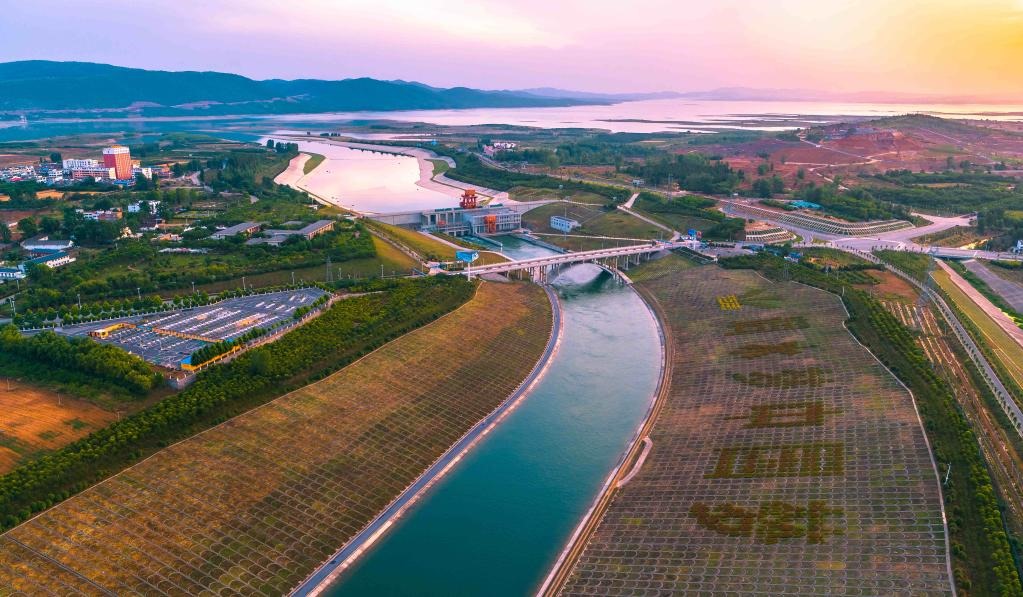 圖為南水北調(diào)中線工程陶岔渠首,上游通過引水渠與丹江口水庫相連,下游與南水北調(diào)中線干渠連接。