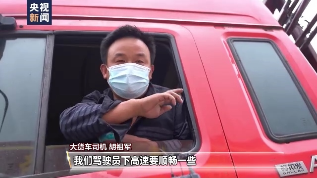 大貨車司機(jī) 胡祖軍:有這個(gè)長行碼了,駕駛員下高速要順暢一些,不會(huì)超過十分鐘的。