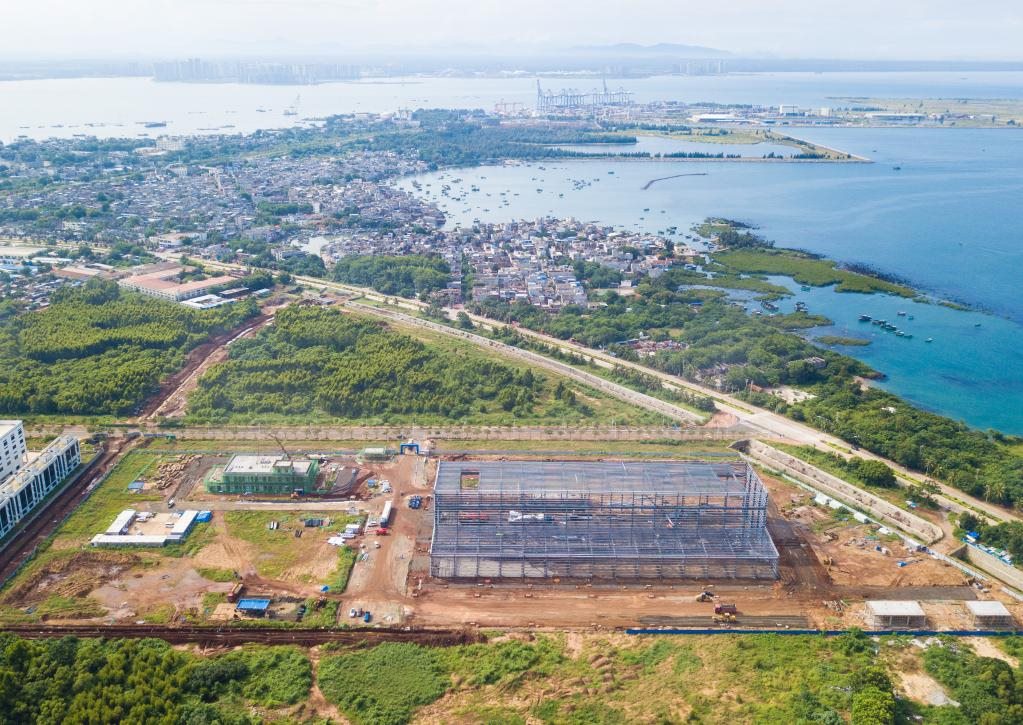 圖為10月2日在海南洋浦經濟開發(fā)區(qū)拍攝的建設中的申能電氣風電新能源裝備產業(yè)項目(無人機照片)。新華社記者蒲曉旭攝