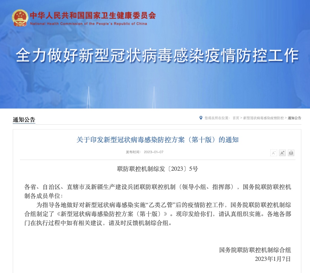 新華社北京1月7日電 國務院聯(lián)防聯(lián)控機制綜合組1月7日印發(fā)《新型冠狀病毒感染防控方案(第十版)》。新版防控方案倡導疫苗接種和個人防護,調(diào)整了傳染源管理方式和檢測策略,優(yōu)化了重點環(huán)節(jié)防控,并明確在疫情流行期間采取緊急防控措施。