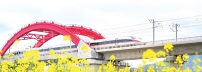 “復(fù)興號”高鐵列車在贛深高鐵龍南特大橋疾馳而過。朱海鵬攝