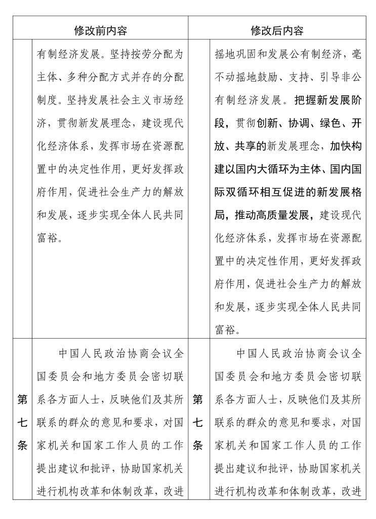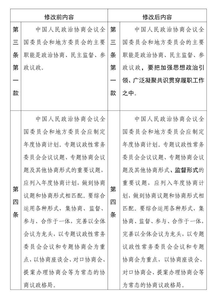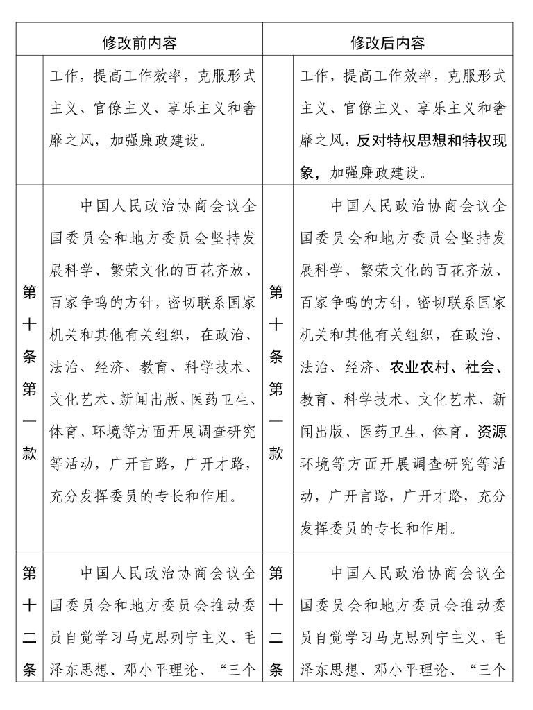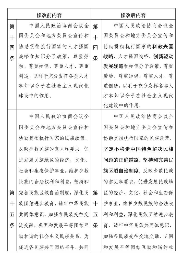 中國人民政治協(xié)商會(huì)議章程 修改前后內(nèi)容對照表