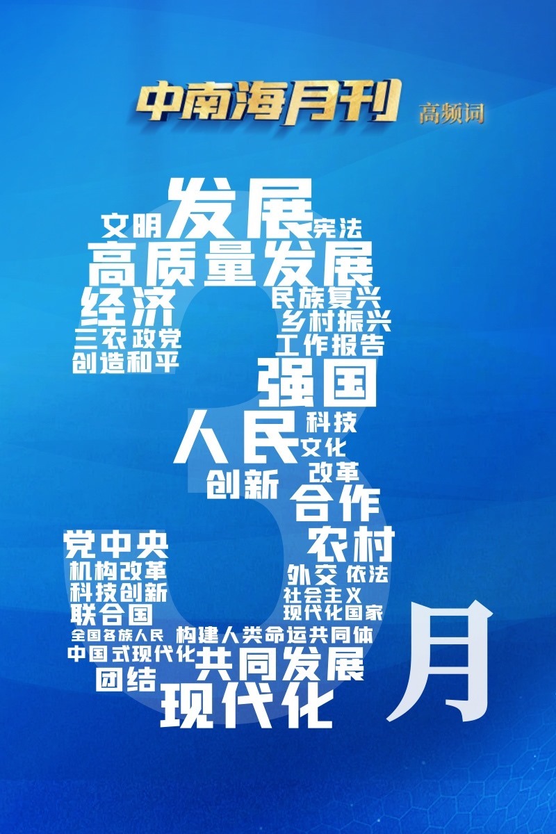 新方位、新征程、新使命。央視網(wǎng)I學(xué)習(xí)數(shù)據(jù)庫(kù)匯總分析習(xí)近平總書(shū)記3月公開(kāi)講話顯示,“發(fā)展”“人民”等詞的出現(xiàn)頻率居前列。引人關(guān)注的是,“強(qiáng)國(guó)”“現(xiàn)代化”等詞同樣高頻出現(xiàn)。