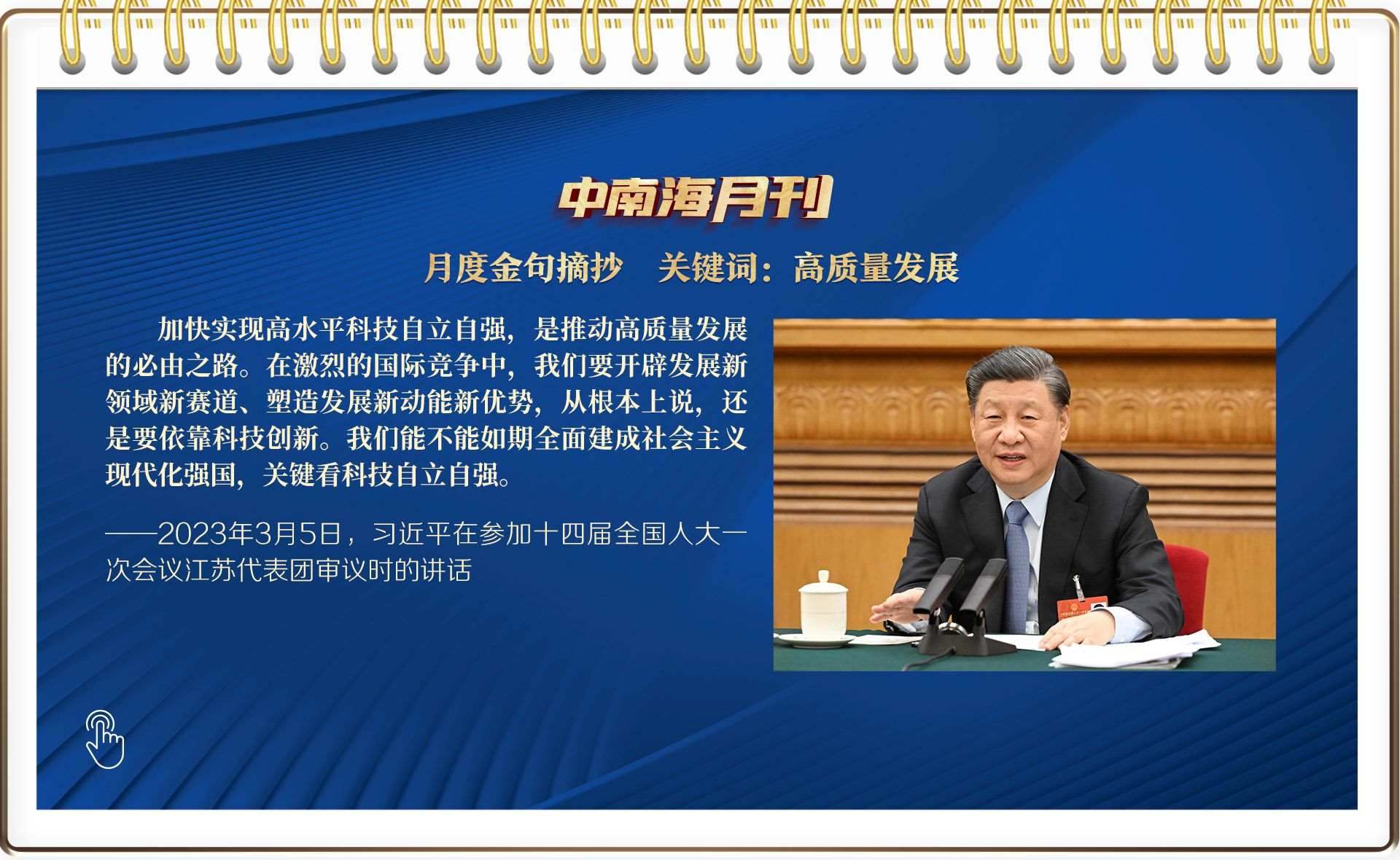 5日,今年全國(guó)兩會(huì)首次到團(tuán)組,總書(shū)記以高質(zhì)量發(fā)展為題,從“制造業(yè)必須筑牢”聊到農(nóng)業(yè)現(xiàn)代化,再談到太湖水質(zhì)……他詳細(xì)闡述未來(lái)中國(guó)高質(zhì)量發(fā)展的發(fā)力點(diǎn)——高水平科技自立自強(qiáng)、加快構(gòu)建新發(fā)展格局、推進(jìn)農(nóng)業(yè)現(xiàn)代化、人民幸福安康,為未來(lái)中國(guó)發(fā)展繪就新圖景。