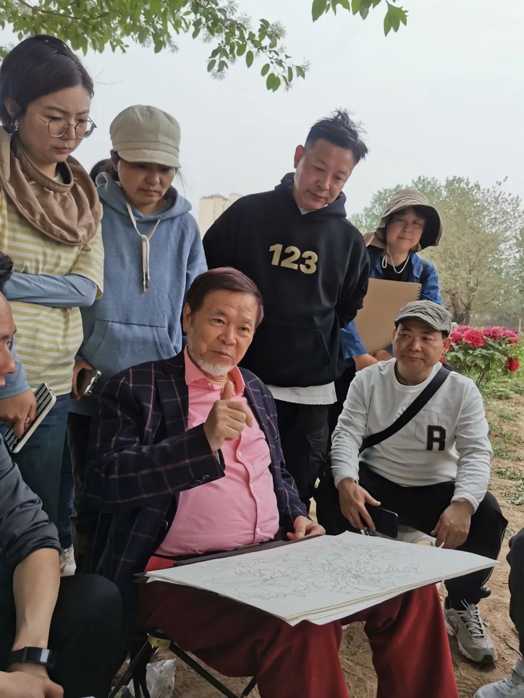 自1975年29歲的何水法先生以赤子之心,首次只身赴菏澤,48年來,為畫牡丹,寫其牡丹之真情、寫其牡丹之風(fēng)骨,寫其國花繁榮富強(qiáng)之真諦。用何水法先生世紀(jì)之初所言:“寫生是畫家與生活的對話”。藝術(shù)家也要不斷地站在時代的前列,站在歷史的高位,不斷思索,不斷地刷新繪畫語言。要緊隨時代發(fā)展的需要,不斷突破新題材、突破新意境。因此他今年又親率眾學(xué)生第十五次來菏澤深入考察,發(fā)揮示范引領(lǐng)作用,體驗生活、開闊思維,為謳歌人民、謳歌新時代,進(jìn)行新的藝術(shù)創(chuàng)造。