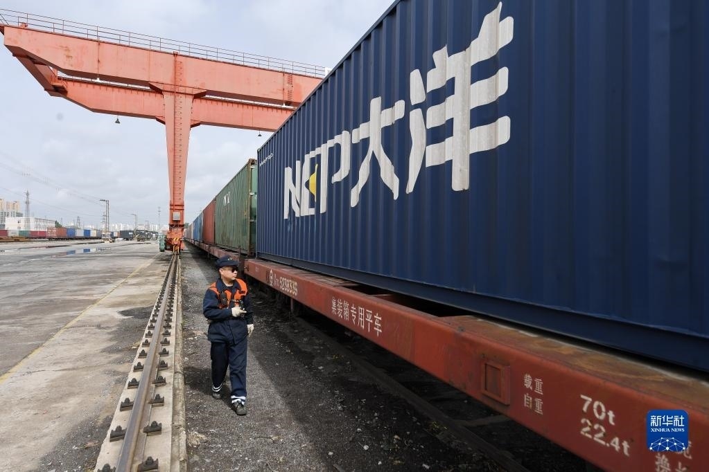 當(dāng)日,河北省廊坊市正式開通中歐(中亞)班列(廊坊——塔什干)。首列開行的集裝箱班列編組55輛,由廊坊北鐵路貨場(chǎng)始發(fā),經(jīng)霍爾果斯口岸出境,途經(jīng)哈薩克斯坦,最終抵達(dá)烏茲別克斯坦塔什干,全程約6000公里,預(yù)計(jì)運(yùn)行時(shí)間約15天,貨物總重量1400余噸,主要包括保溫管、機(jī)械設(shè)備、型材等。新華社發(fā)(劉向攝)