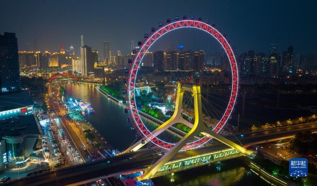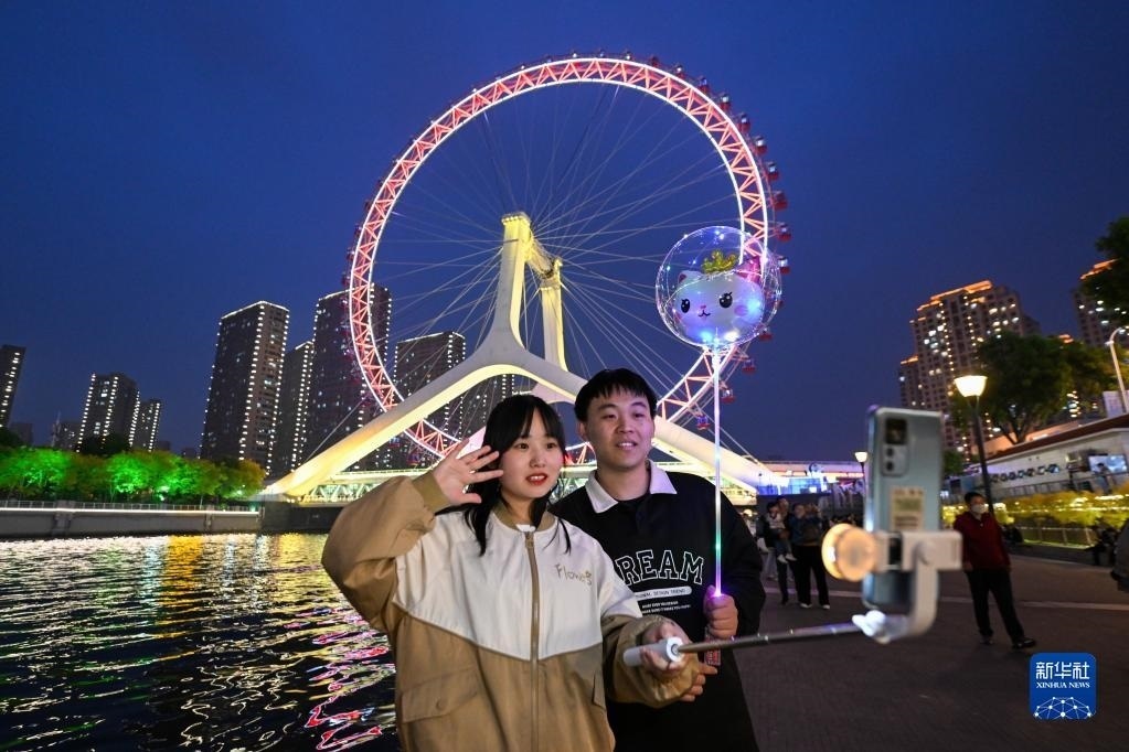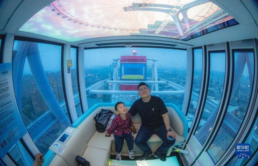 近日,天津市地標(biāo)景觀之一的“天津之眼”摩天輪完成整體更新改造,迎接即將到來的“五一”假期。此次提升改造更換了48個(gè)全新轎廂,包含12個(gè)內(nèi)設(shè)天屏和地屏的“智能科技”主題轎廂,用來播放天津文旅宣傳視頻,增強(qiáng)游客的觀景體驗(yàn)感。新華社記者 孫凡越 攝