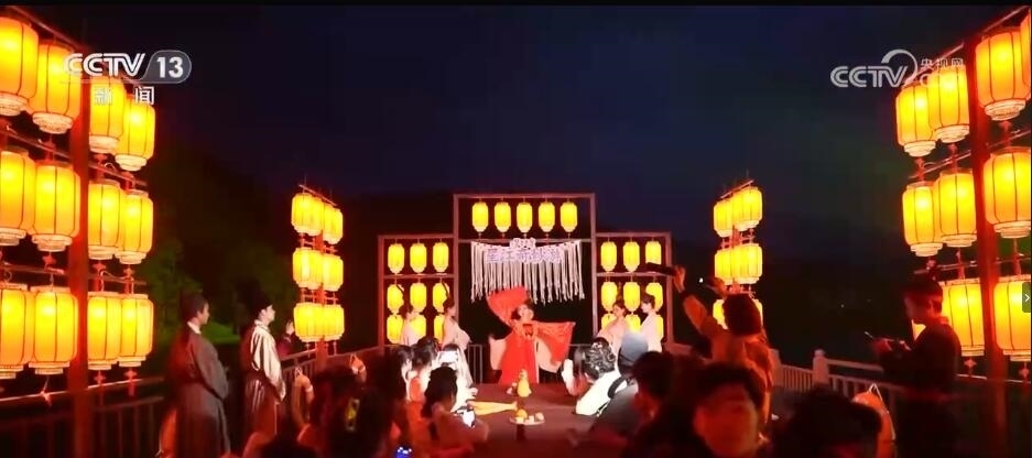 游客 羅藝:我覺得這邊還挺適合年輕人游玩的,有很多國潮的元素。我們今天一起體驗了炒茶,一起看了板凳龍、舞龍燈的表演,非常震撼,非常開心。
