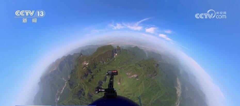 張家界天門洞上演翼裝飛行穿越表演