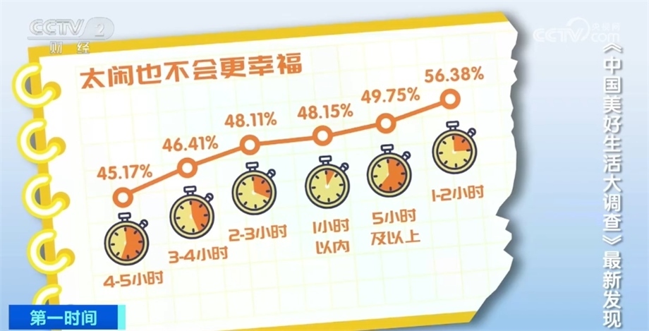 最讓人羨慕的是休閑時間在1—2小時的人群,他們不僅幸福感高,收入預(yù)期增加的比例也最高。