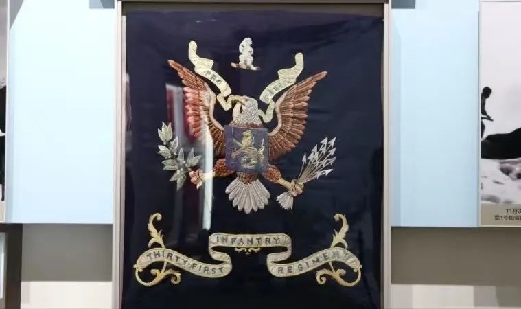 這是陳列在軍博的美軍“北極熊團(tuán)團(tuán)旗”。《跨過鴨綠江》真實還原了長津湖戰(zhàn)役中,志愿軍全殲美北極熊團(tuán)并繳獲其團(tuán)旗的全過程。