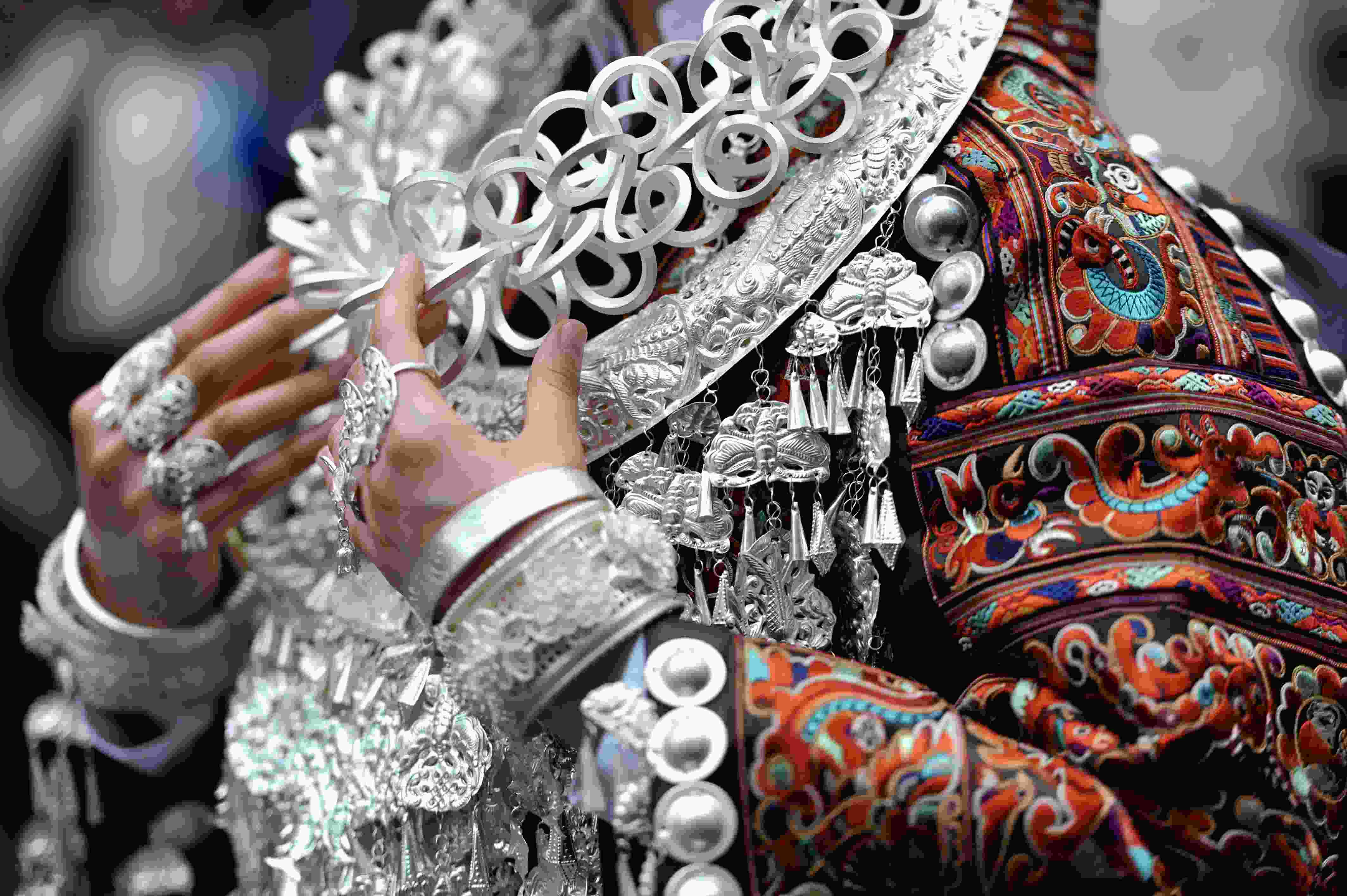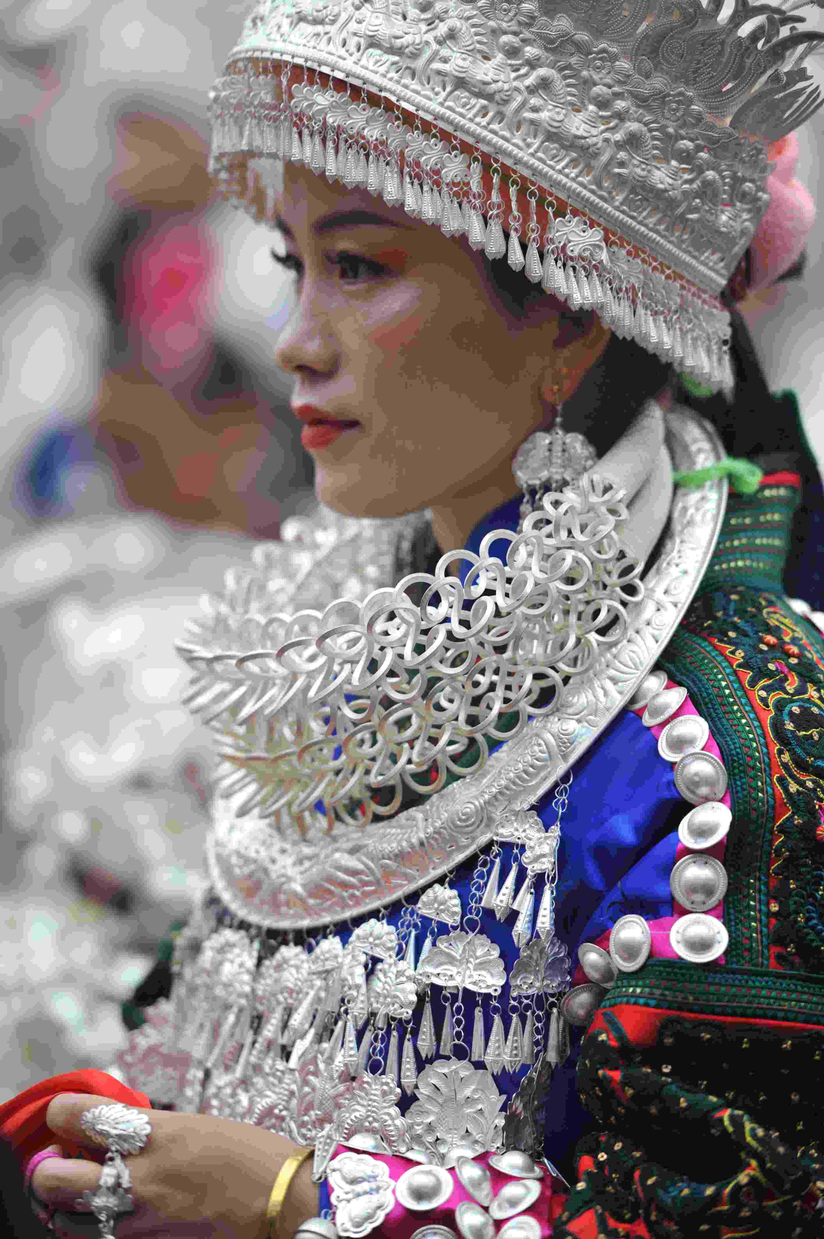 貴州省臺(tái)江縣苗族文化豐富多彩厚重,其服飾是苗族文化的重要載體,苗族女子服飾以靚麗的銀飾、精美的刺繡和獨(dú)特的審美文化內(nèi)涵而被稱為“穿在身上的史書(shū)”,成為識(shí)別苗族9大支系的重要標(biāo)識(shí),具有極高的藝術(shù)、觀賞和收藏價(jià)值。 (寧堅(jiān))