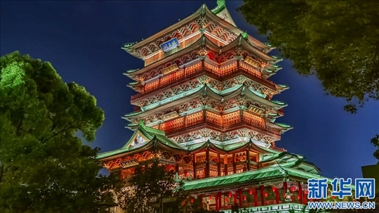 南昌文化地標滕王閣夜景美輪美奐。新華網(wǎng)發(fā)