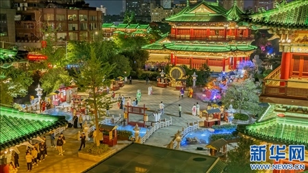 “雄州霧列,俊采星馳……”在碧波蕩漾的贛江之濱,夜色中的滕王閣莊重典雅,贛江夜景更是美不勝收?!拔逡弧奔倨?,大批游客來到南昌文化地標滕王閣游玩打卡,感受歷史文化。如今,南昌正成為熱門旅游目的地,煥發(fā)著文化旅游中心城市的新魅力。