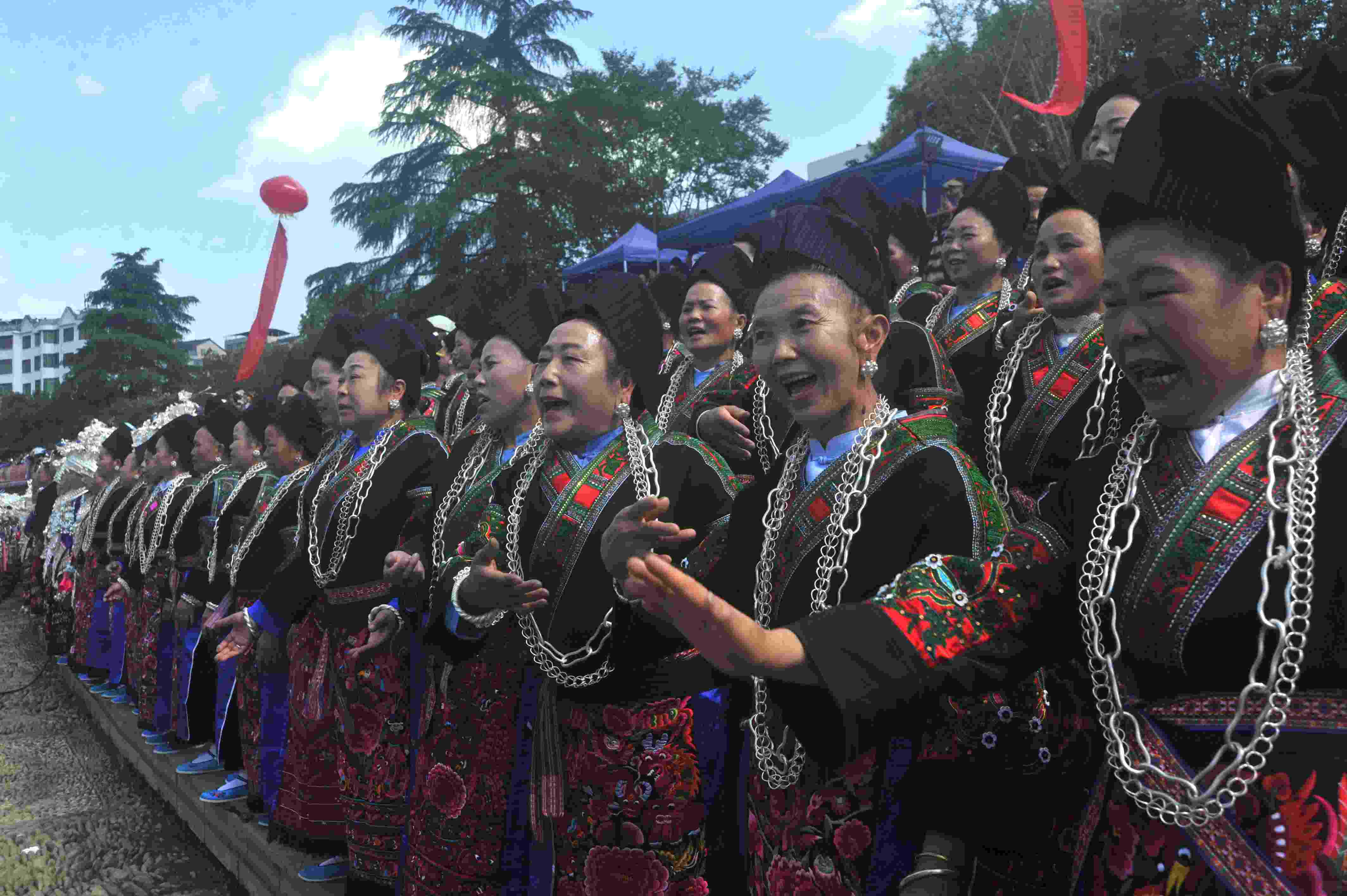 貴州臺江:翁你河畔上演萬人苗歌對唱