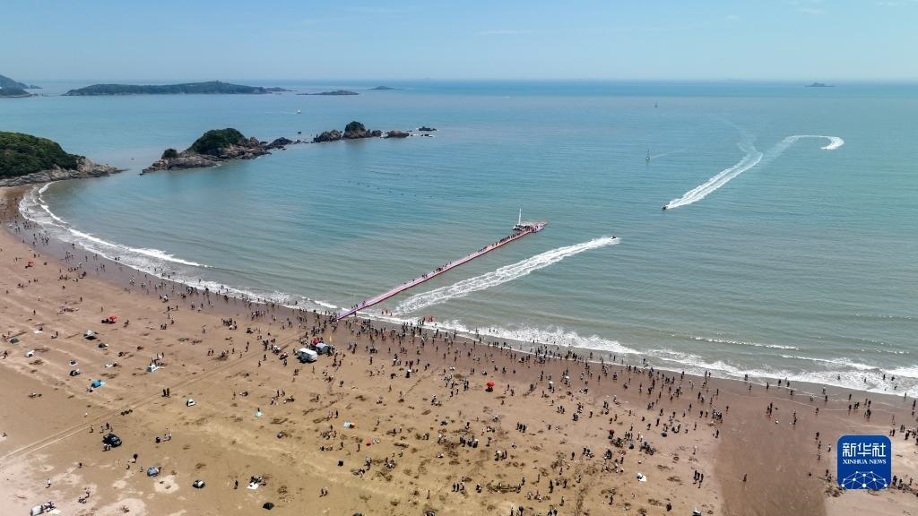 5月2日,游客在浙江省舟山市朱家尖大青山里沙景區(qū)游玩(無人機(jī)照片)。