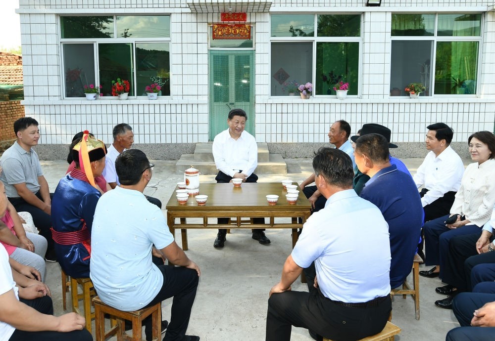2019年7月15日至16日,習近平在內蒙古考察并指導開展“不忘初心、牢記使命”主題教育。這是15日下午,習近平在赤峰市喀喇沁旗河南街道馬鞍山村村民張國利家,同基層干部群眾代表座談交流。