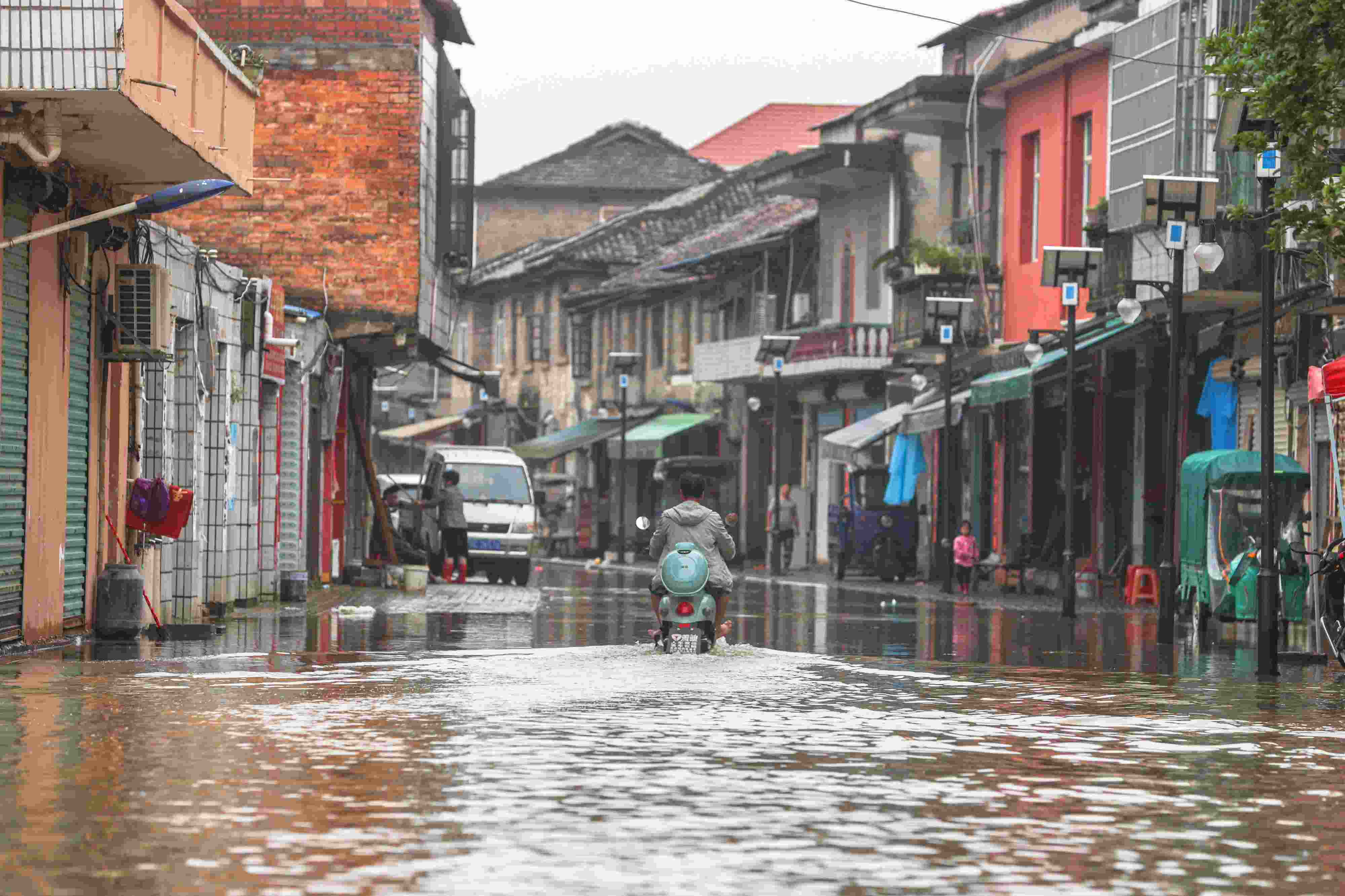 2023年5月6日,江西吉安,新干縣消防救援大隊隊員在麥斜鎮(zhèn)拿埠村給受困群眾運送生活物資。 視覺中國