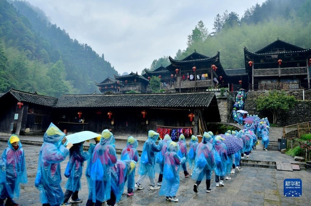 湖北省宣恩縣彭家寨風(fēng)景區(qū)依托保存完好的土家古吊腳樓群落,通過完善研學(xué)基礎(chǔ)設(shè)施,吸引各地學(xué)校組織學(xué)生來此開展土家民俗文化、土家建筑等研學(xué)活動(dòng)。古寨研學(xué)不僅讓學(xué)子們收獲成長,同時(shí)也豐富了山區(qū)旅游的內(nèi)涵,為帶動(dòng)鄉(xiāng)村振興注入了新動(dòng)能。新華社發(fā)(宋文攝)