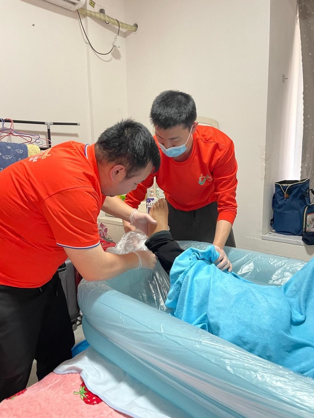 去年7月,晏楊俊祺上門為一位失能老人助浴。當他完成服務,老人的家屬拉著他的手說:“像我們這種需求肯定有很多,你們應該多多推廣,擴大業(yè)務?!?/p>