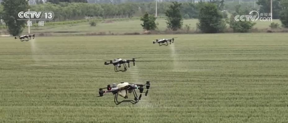 在山西運(yùn)城,439萬畝小麥從北到南陸續(xù)進(jìn)入揚(yáng)花灌漿關(guān)鍵期,農(nóng)技人員在田間地頭給予農(nóng)戶技術(shù)指導(dǎo)。在運(yùn)城河津市村民馬關(guān)發(fā)的小麥田里,10架無人機(jī)正在麥田上方進(jìn)行噴灑作業(yè)。