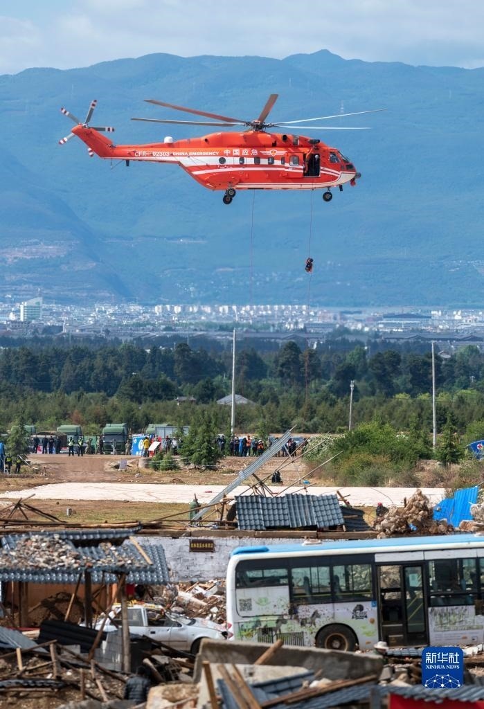 當日,國務院抗震救災指揮部辦公室、應急管理部、云南省人民政府在云南麗江等地聯(lián)合舉行高山峽谷地區(qū)地震災害空地一體化聯(lián)合救援演習,代號“應急使命·2023”。