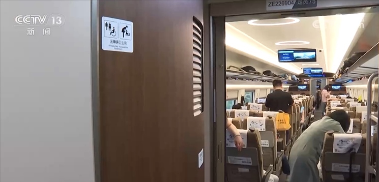 鐵路部門也推出了一系列無障礙服務(wù)舉措。由北京西開往湖南邵陽的G811次智能復(fù)興號動車組,16節(jié)車廂中的第4號、第12號車廂的150個座位優(yōu)先提供給殘障旅客,也被稱作“無障礙車廂”,里面配備了更寬闊的通過門、無障礙衛(wèi)生間、輪椅放置區(qū)、盲文服務(wù)提示標(biāo)識等。