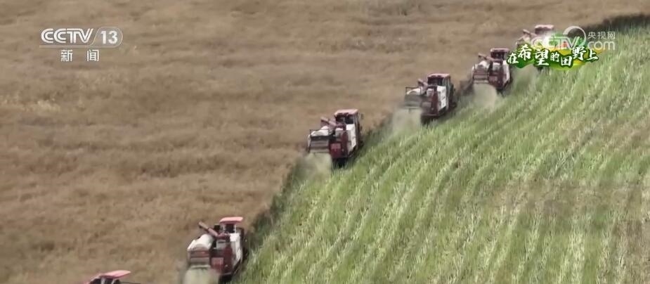 總臺央視記者 陳燁煒:我現(xiàn)在是在湖北省枝江市的一處油菜地里,在我身后,幾臺收割機正來回穿梭作業(yè)。今年這里采用的是分段式收割方法,這種方式可以大大降低機收的損失率,助力增產(chǎn)增收。
