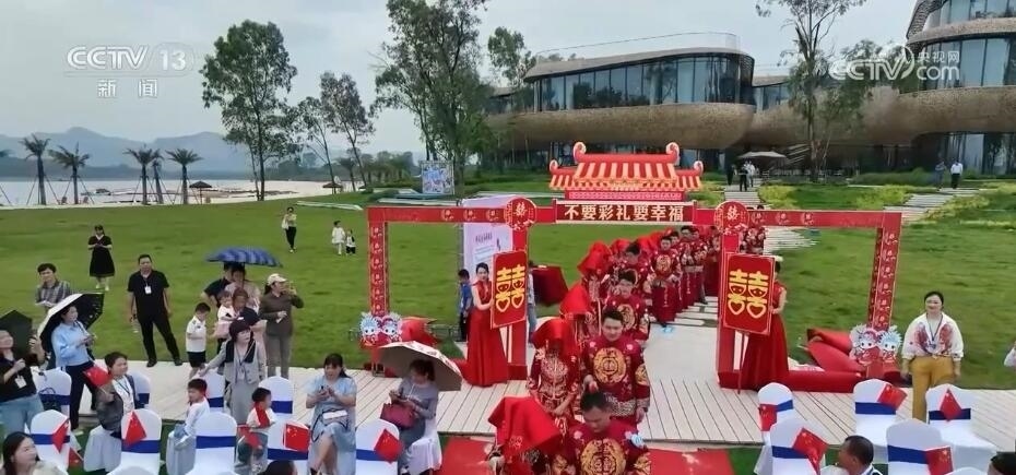 在江西貴溪、山東巨野等地,五月份組織了多場主題為“不要彩禮要幸福”的集體婚禮,倡導新人們選擇簡約的婚禮儀式。在河北省河間市的集體婚禮現(xiàn)場,紅毯艷艷、絲竹裊裊,新人們身著傳統(tǒng)禮服,在證婚人、主婚人的見證下,按照周制漢婚的傳統(tǒng)儀式開啟他們愛的旅程。