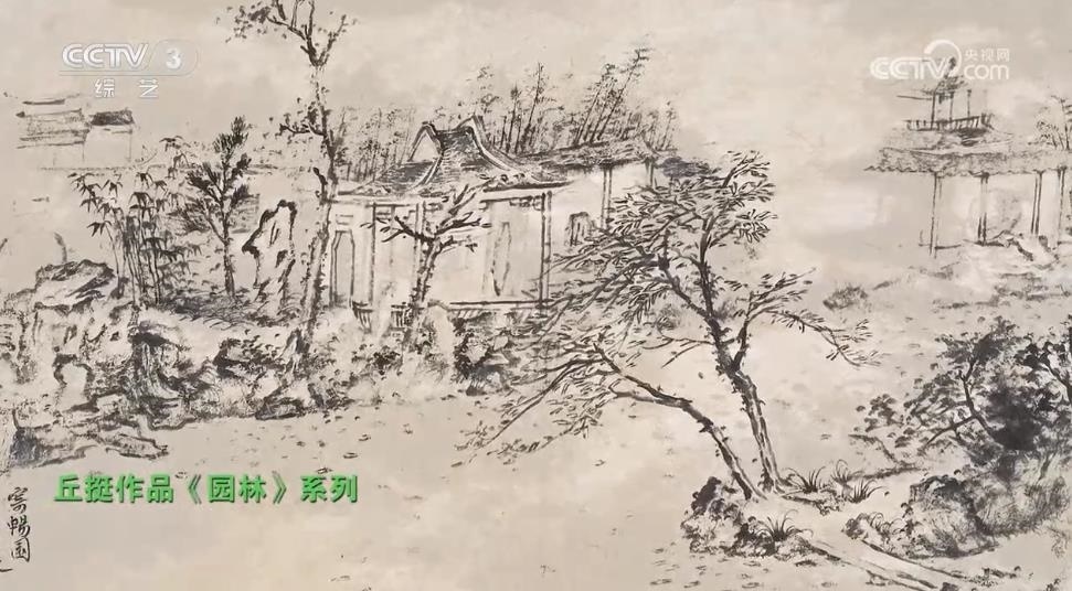 北京大學(xué)博雅講席教授 中央文史研究館館員 陳平原:像這些其實(shí)都是,不是真的山水,山水畫又重新凝練成為園林,今天的國畫家,用這種小品的形式把自己胸中的塊壘借助于筆墨、文章和畫像三者結(jié)合的形式呈現(xiàn)出來,極少極少,在我看來丘挺是當(dāng)代畫家里面最有文人氣的。