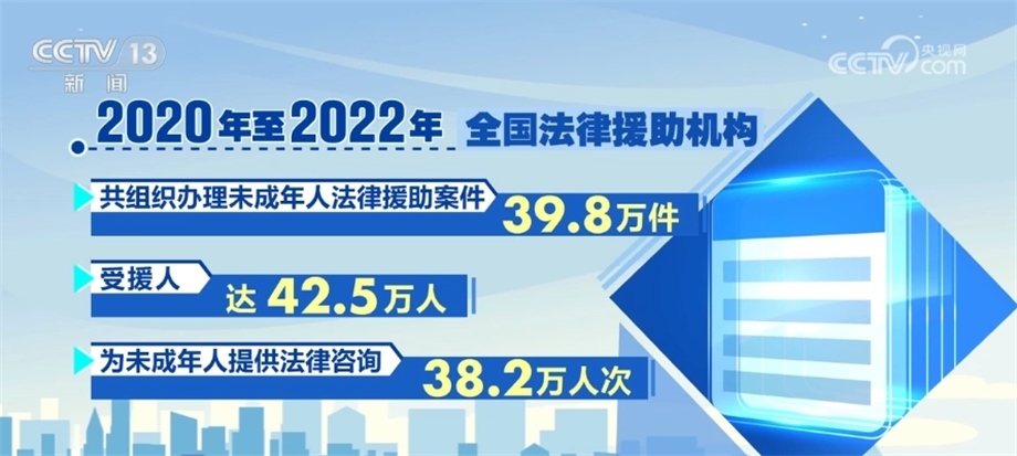 司法部相關(guān)負(fù)責(zé)人在發(fā)布會上介紹,2020年,司法部印發(fā)《未成年人法律援助服務(wù)指引(試行)》,以專章形式規(guī)范了辦理性侵害未成年人法律援助案件的工作程序和服務(wù)標(biāo)準(zhǔn)。據(jù)統(tǒng)計(jì),2020年至2022年,全國法律援助機(jī)構(gòu)共組織辦理未成年人法律援助案件39.8萬件,受援人達(dá)42.5萬人,為未成年人提供法律咨詢38.2萬人次。