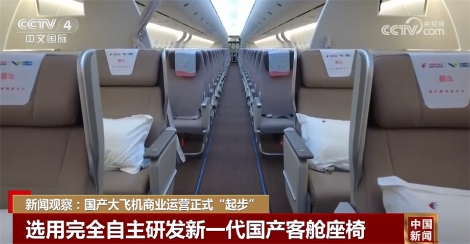 另外,飛機公務(wù)艙、經(jīng)濟(jì)艙均選用完全自主研發(fā)的新一代國產(chǎn)客艙座椅。其中,8個公務(wù)艙座椅為全鋁合金框架結(jié)構(gòu),采用搖籃式設(shè)計,后靠可達(dá)120度,前后座椅間距超過1米;156個經(jīng)濟(jì)艙設(shè)計采用3-3布局,中間座位比兩邊座位寬1.5厘米;加上C919客艙擁有2.25米的過道高度,旅客能感受到舒適的頂部和前方視覺空間。