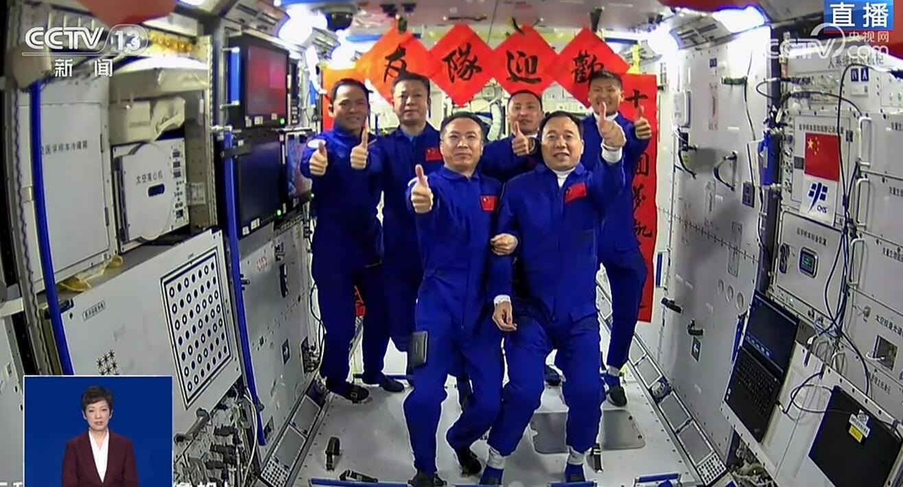 央視網(wǎng)消息:宇宙星河浪漫,探索永不止步。今天(5月30日)9時31分,搭載神舟十六號載人飛船的長征二號F遙十六運(yùn)載火箭在酒泉衛(wèi)星發(fā)射中心點(diǎn)火發(fā)射,發(fā)射任務(wù)取得圓滿成功。神舟十六號航天員景海鵬、朱楊柱、桂海潮順利進(jìn)入太空。神舟十六號載人飛船入軌后,在16時29分成功對接于空間站天和核心艙徑向端口。之后,神舟十六號航天員乘組從飛船返回艙進(jìn)入軌道艙。翹盼已久的神舟十五號航天員乘組打開“家門”,歡迎遠(yuǎn)道而來的神舟十六號航天員乘組入駐“天宮”。