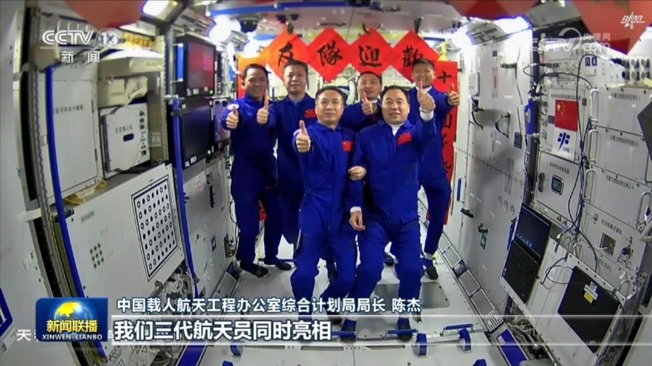 神舟十五號三名航天員在空間站實時觀看了神舟十六號發(fā)射的全過程。