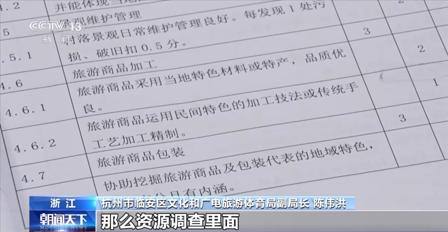 杭州市臨安區(qū)文化和廣電旅游體育局副局長 陳偉洪:資源調(diào)查是占三分,那么資源調(diào)查里面我們又要細分一下的,我們有要求,最起碼你這個村莊里面,比如說至少是(調(diào)查)60戶,這個是肯定的。