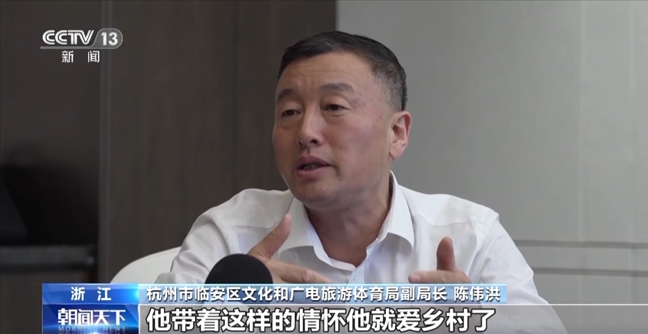 杭州市臨安區(qū)文化和廣電旅游體育局副局長 陳偉洪:他帶著這樣的情懷他就愛鄉(xiāng)村了,他不會為鄉(xiāng)村暫時的困難和問題就退出了,就逃跑了。