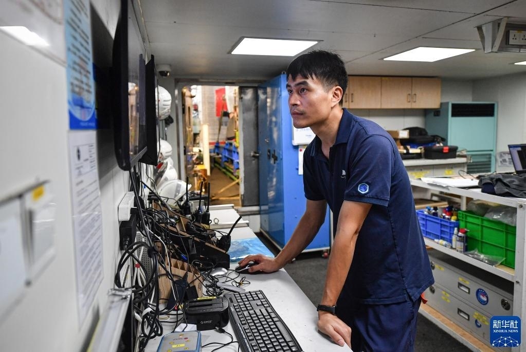 近日,由國家文物局考古研究中心、中國科學(xué)院深??茖W(xué)與工程研究所、中國(海南)南海博物館聯(lián)合組成的深??脊抨?duì)搭乘“探索一號”科考船,在南海西北陸坡一號、二號沉船遺址海域進(jìn)行第一階段調(diào)查。該科考船載有“深海勇士”號載人潛水器,用于水下考古數(shù)據(jù)采集。新華社記者隨船跟訪,直擊調(diào)查一線。   新華社記者 蒲曉旭 攝