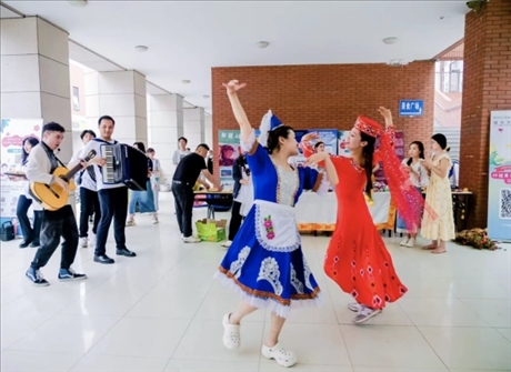 5月31日,“石榴籽 祖國行”新疆大學代表團來到南開大學。在故事分享會上,王彥臣、李姝洋、迪力亞爾·迪力夏提同學向南開大學青年學子講述了“斷臂男孩”阿卜杜外力·阿卜杜拉、“黨徽大叔”阿布都加帕爾·猛德和“時代楷模”拉齊尼·巴依卡的故事。在文藝大舞臺上,新疆大學代表團各民族同學通過展示新疆特色舞蹈“木卡姆”、民族器樂“庫布孜”,向南開大學師生展現(xiàn)大美新疆熱情好客、能歌善舞的地域特色。