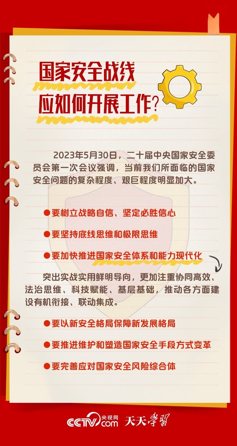 5月30日,習近平總書記主持召開二十屆中央國家安全委員會第一次會議時強調(diào),要全面貫徹黨的二十大精神,深刻認識國家安全面臨的復雜嚴峻形勢,正確把握重大國家安全問題,加快推進國家安全體系和能力現(xiàn)代化,以新安全格局保障新發(fā)展格局,努力開創(chuàng)國家安全工作新局面。