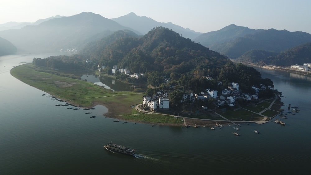 這是2019年11月16日拍攝的位于安徽的新安江山水畫(huà)廊(無(wú)人機(jī)照片)。新華社記者 張端 攝