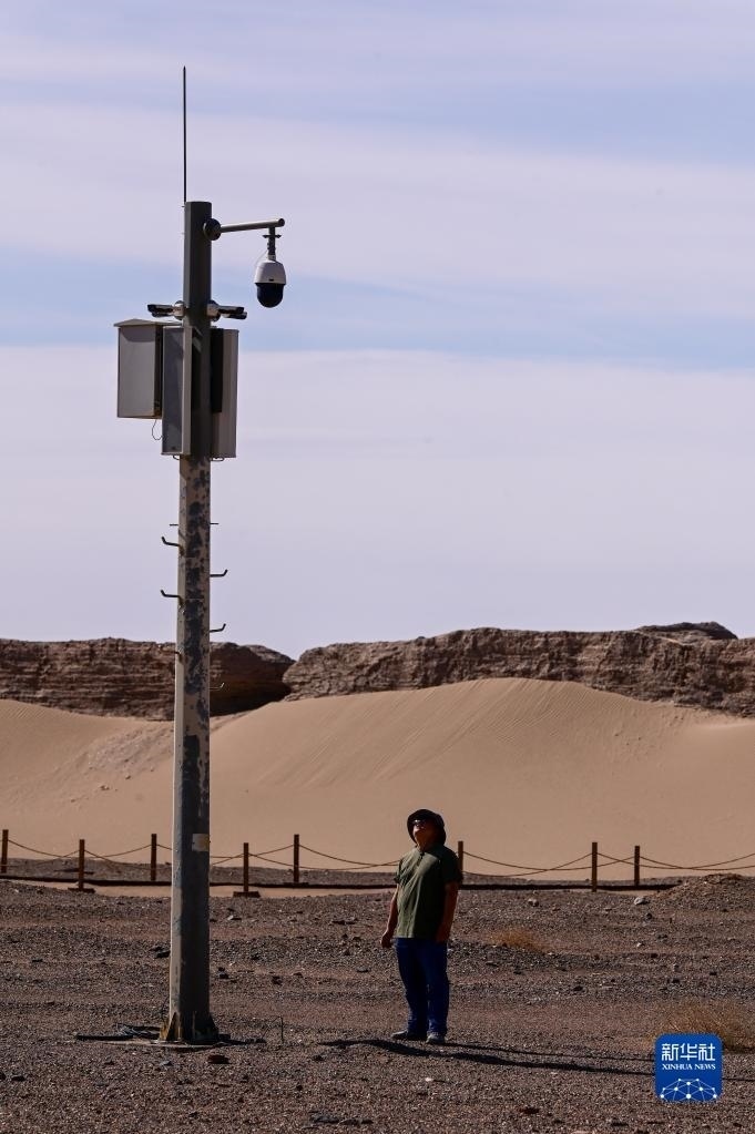 6月2日,額濟(jì)納旗文物保護(hù)中心工作人員在黑城遺址察看文保監(jiān)控設(shè)備工作情況。   新華社記者 連振 攝