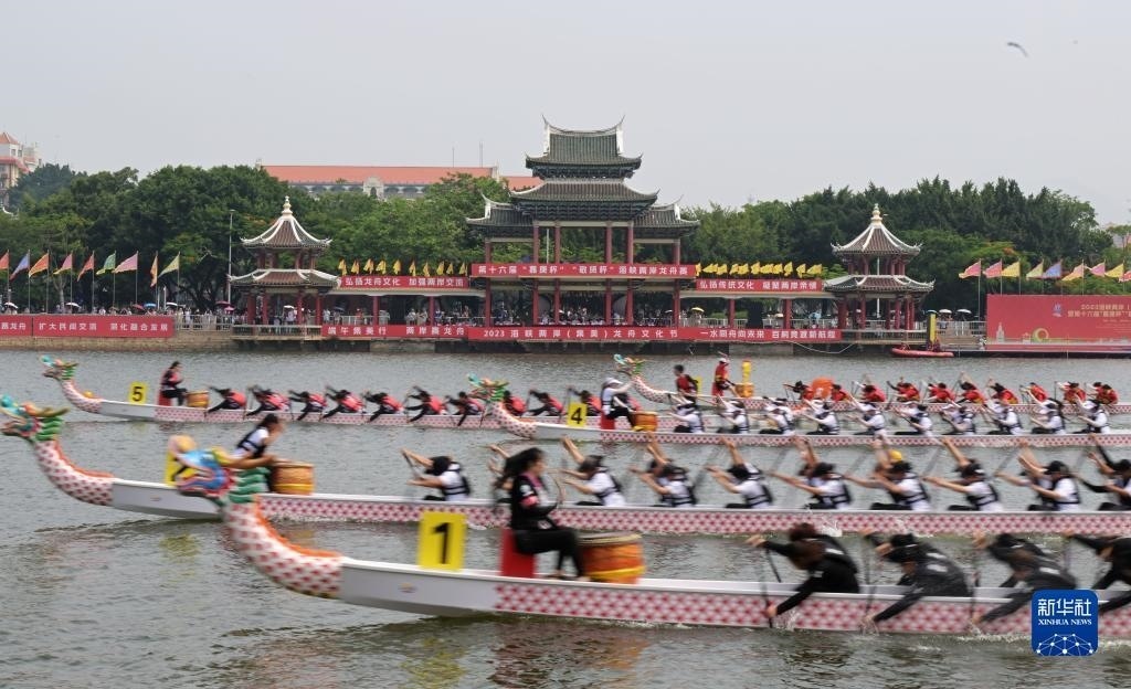 當(dāng)日,2023海峽兩岸(集美)龍舟文化節(jié)暨第十六屆“嘉庚杯”“敬賢杯”海峽兩岸龍舟賽在廈門(mén)集美龍舟池啟幕。來(lái)自海峽兩岸的47支龍舟隊(duì)伍在競(jìng)賽中享受龍舟競(jìng)渡的活力、中華傳統(tǒng)文化的魅力,共有約500名臺(tái)胞參與賽事。