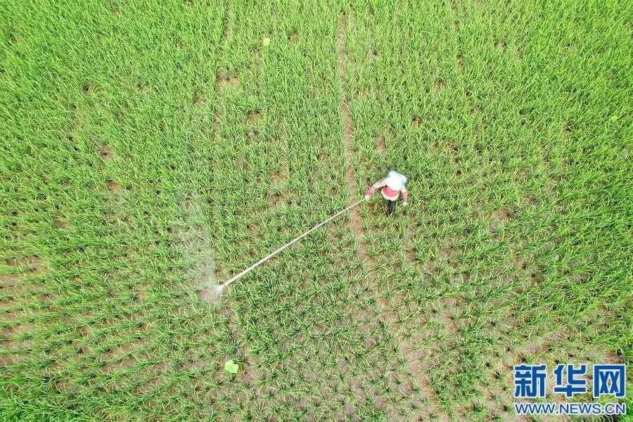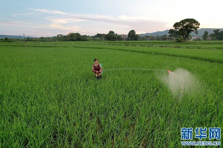 近日,在江西省撫州市廣昌縣,3.4萬多畝早稻正逐步進入分蘗期,稻田里綠油油一片,禾苗根壯、長勢喜人。農民正忙著噴灑農藥,進行防治病蟲害作業(yè),為夏糧豐產豐收打下基礎。(危仁鵬 徐維棟)