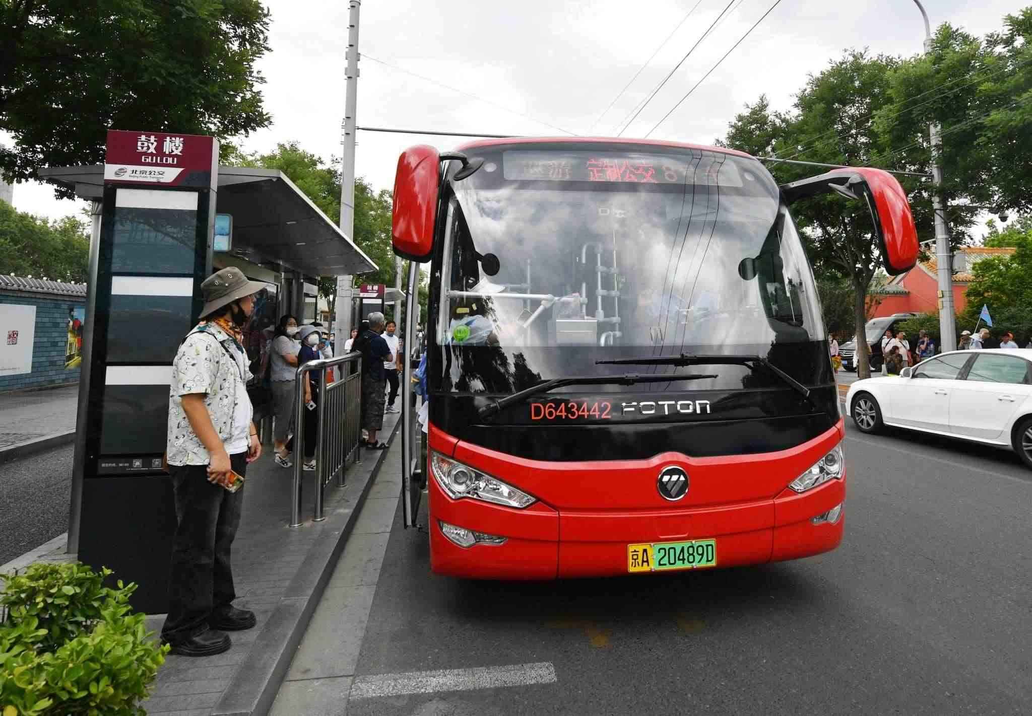 2023年6月8日,北京核心區(qū)巡游定制公交正式上線,服務覆蓋什剎海、鼓樓、恭王府、南鑼鼓巷、北海、景山公園、故宮博物院等眾多核心區(qū)域以及西單商圈等地。視覺中國