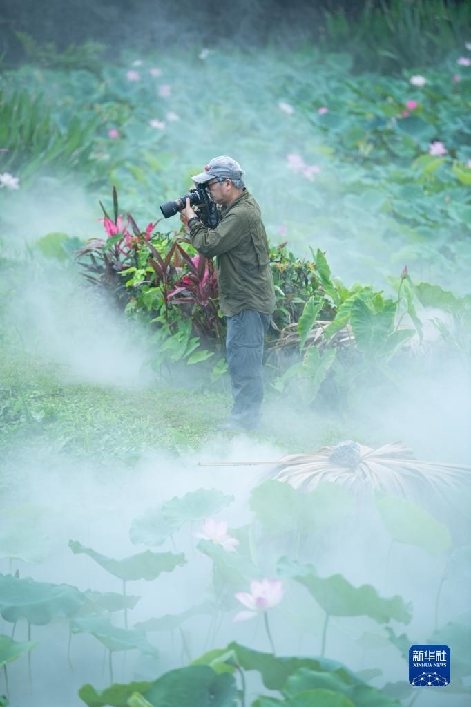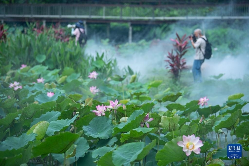 6月9日,人們?cè)诎拈T龍環(huán)葡韻拍攝荷花。