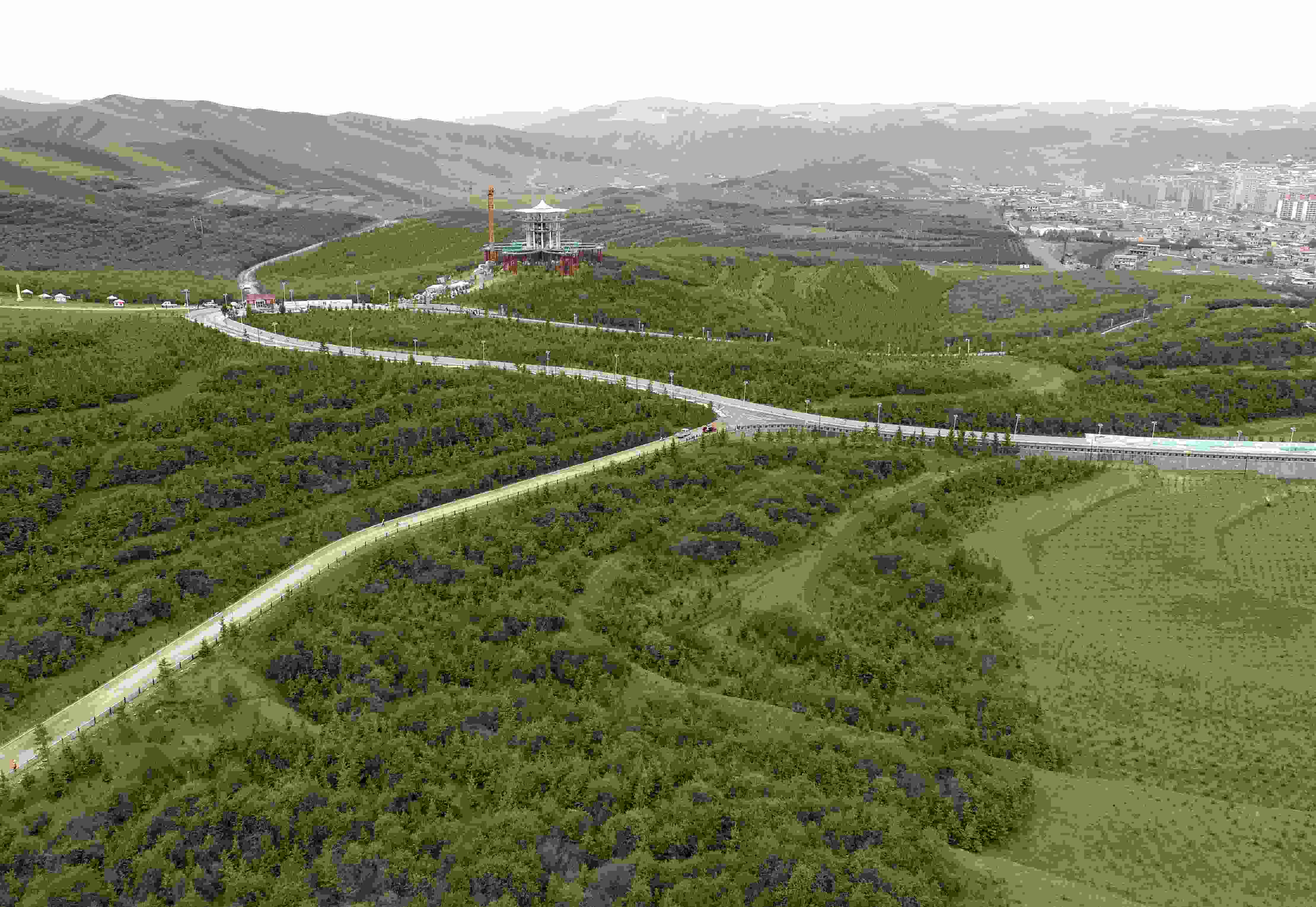 6月5日拍攝的位于甘肅省甘南藏族自治州首府合作市的錄豆昂綠化基地。
