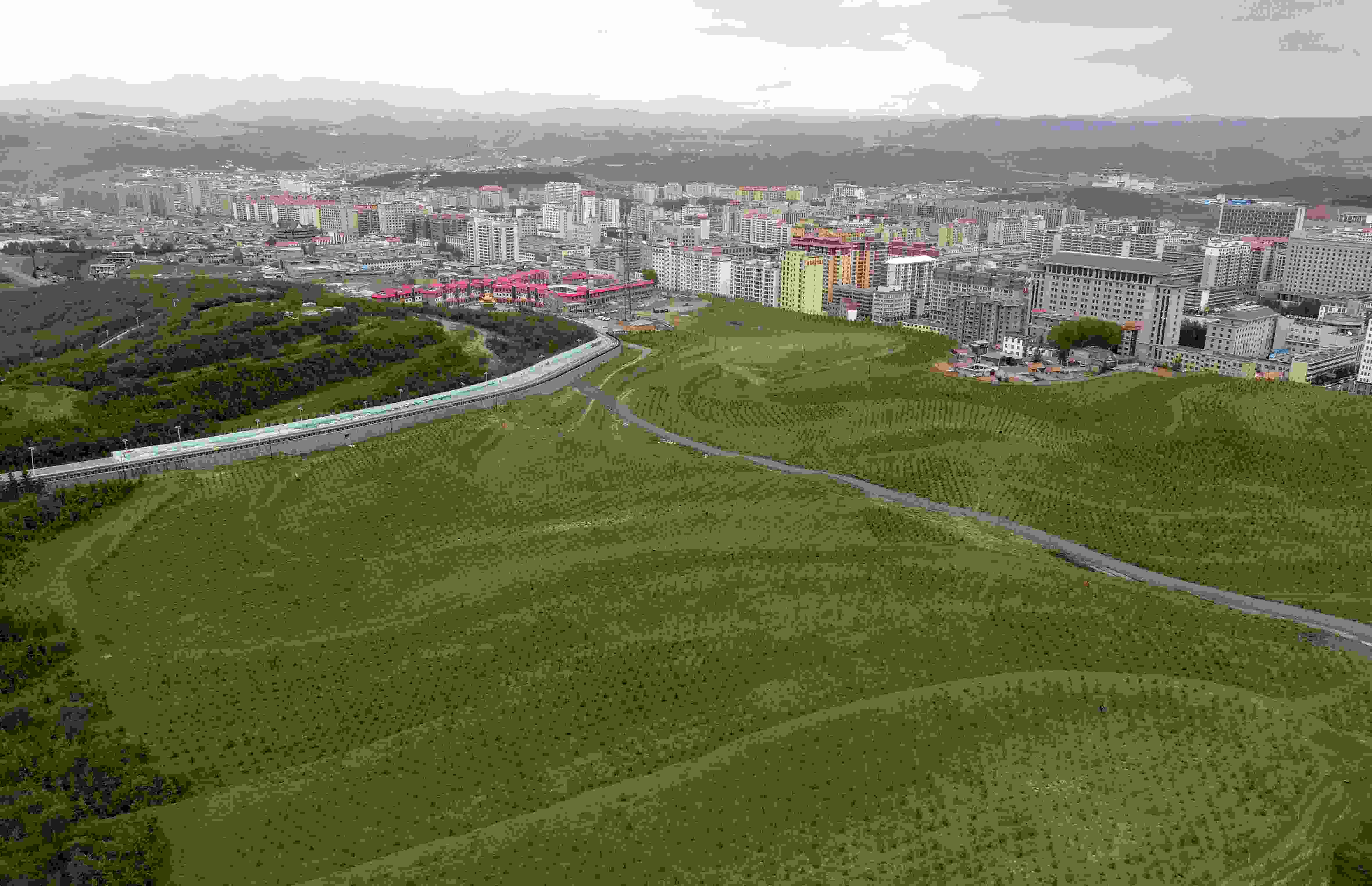 6月5日拍攝的位于甘肅省甘南藏族自治州首府合作市的錄豆昂綠化基地。 張進(jìn)剛 攝