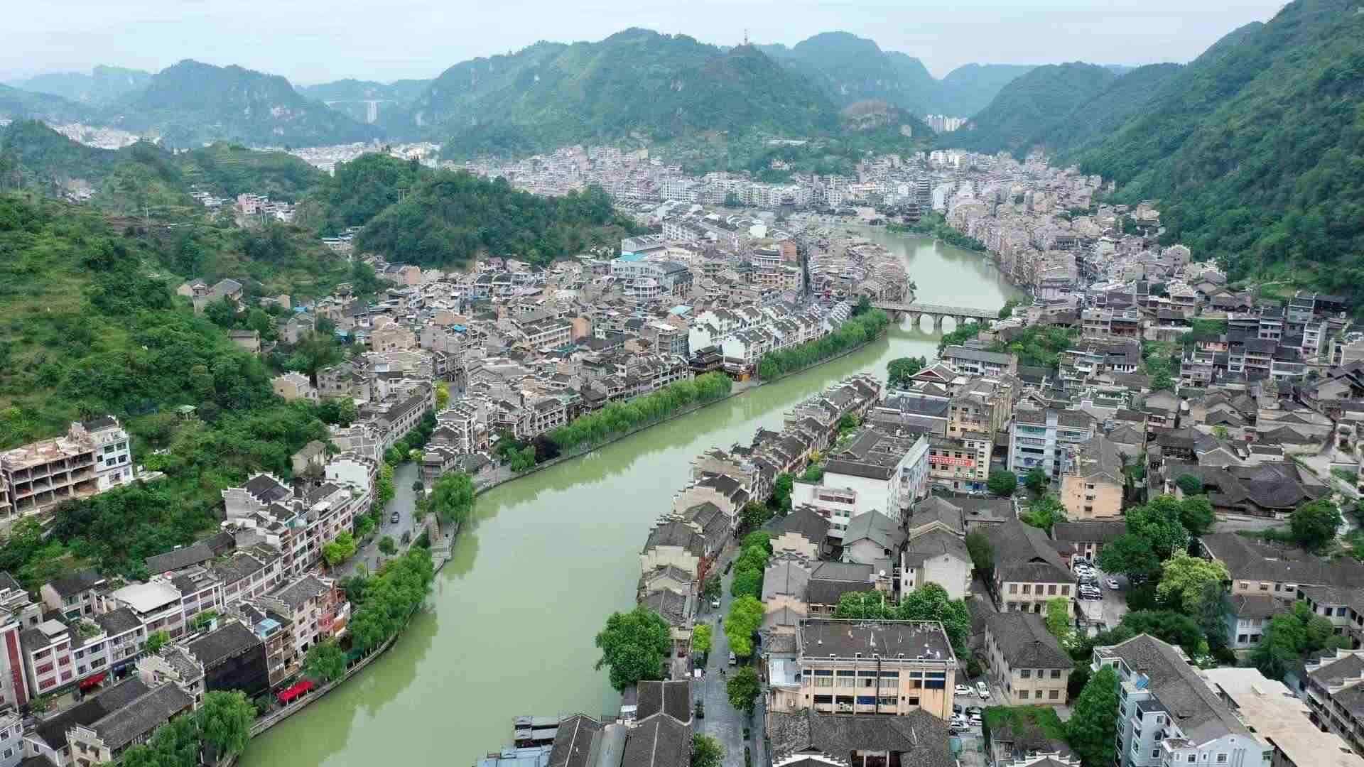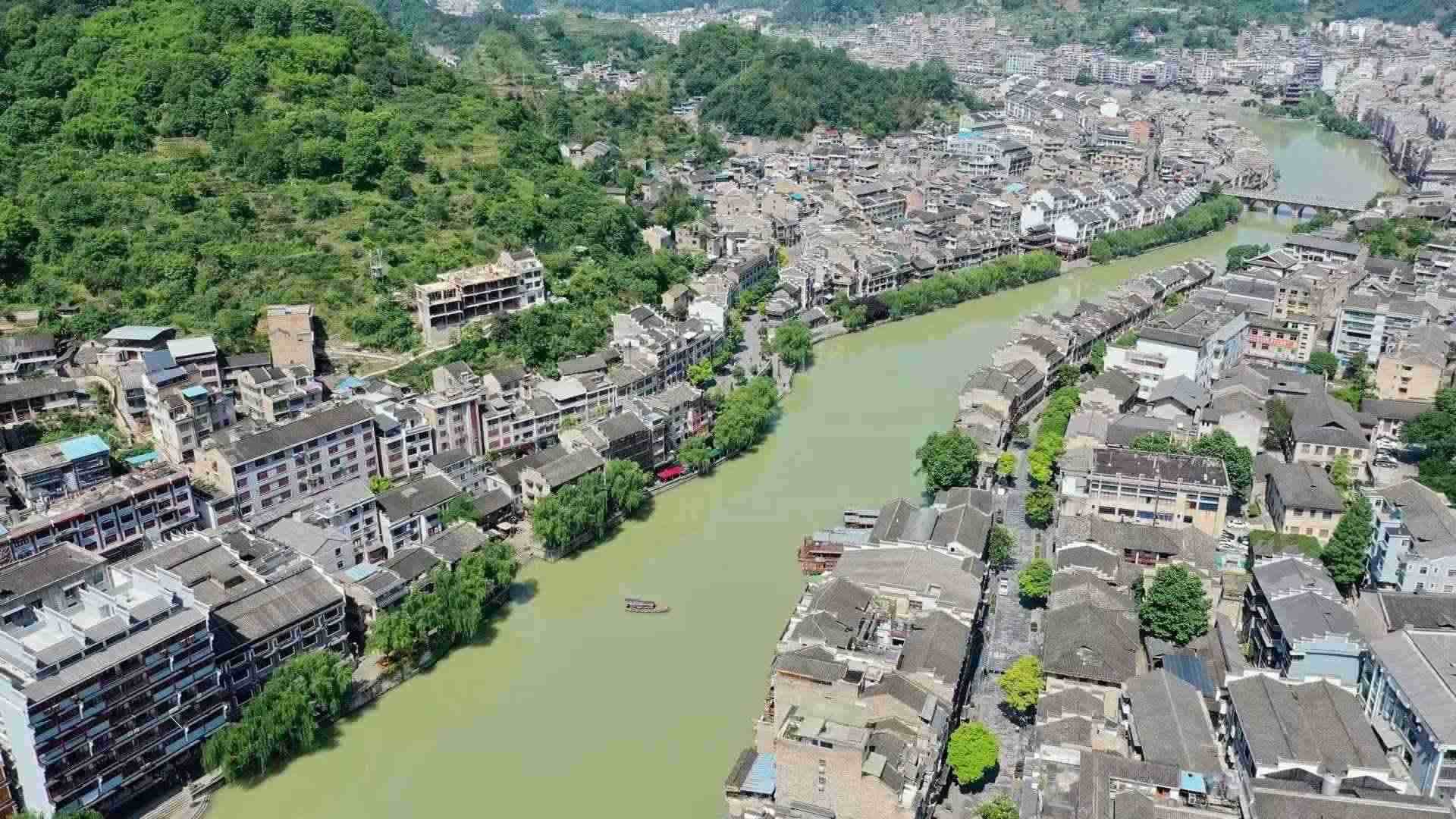 2023年6月7日,航拍貴州鎮(zhèn)遠(yuǎn),舞陽(yáng)河穿城而過(guò)。